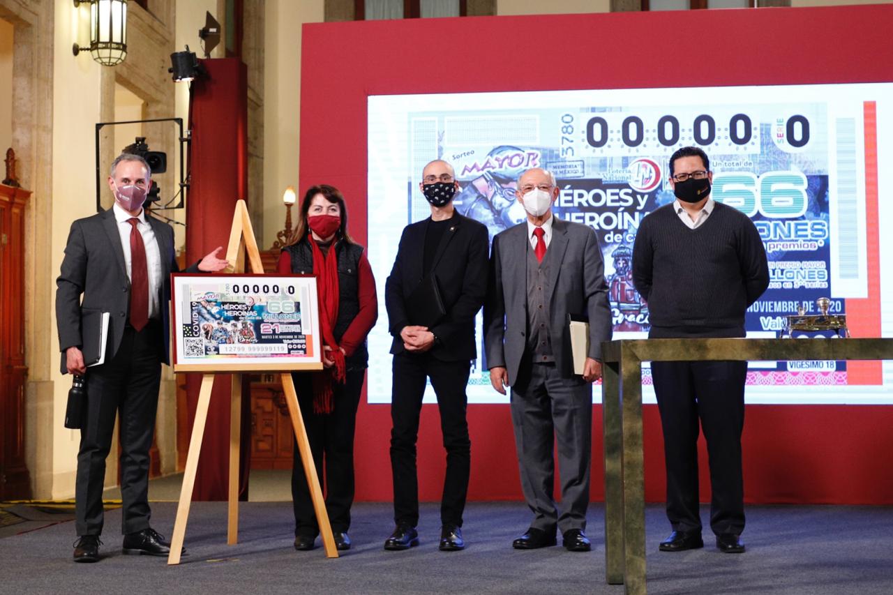 El Dr. Eduardo Villegas Megías, coordinador de Memoria Histórica y Cultural de México, presentó el homenaje ante aquellos que no han suspendido actividades frente a esta pandemia, con el nuevo billete de lotería: Héroes y Heroínas de cada día.