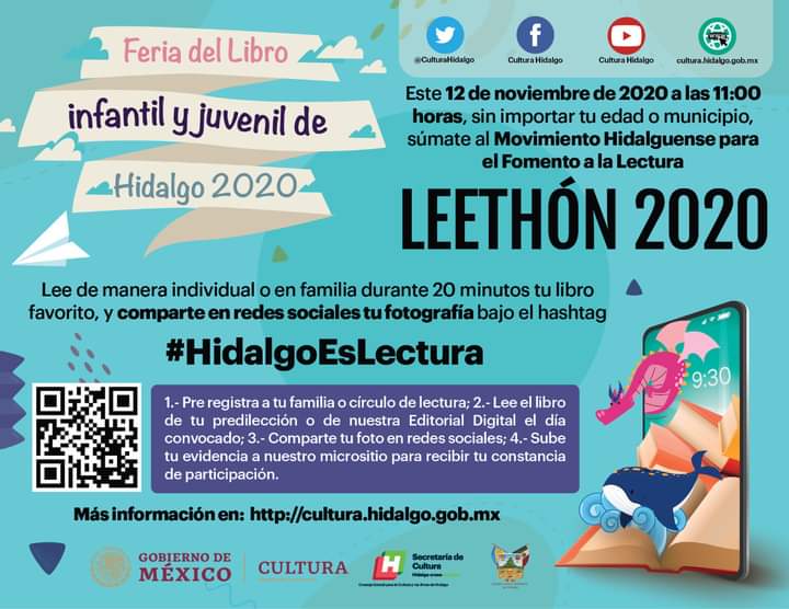 Puedes consultar las bases, registros y horarios de cada evento en el micrositio http://cultura.hidalgo.gob.mx/leethon-2020