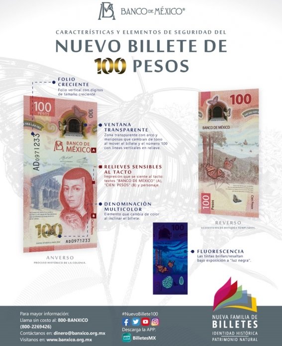 Conoce las características y elementos de seguridad del Nuevo Billete de 100 pesos.