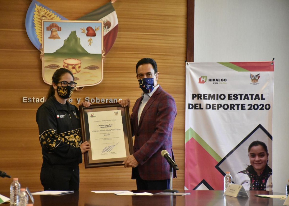 El gobernador Omar Fayad entregó el Premio Estatal del Deporte 2020 a cuatro atletas hidalguenses de igual número de disciplinas: Nabor Castillo Pérez, de judo; Javier Alejandro Cruz Hernández, de boxeo; Daláhi Azarel Meza Coronado, de natación, y a Ximena Figueroa Muñoz de tenis de mesa.