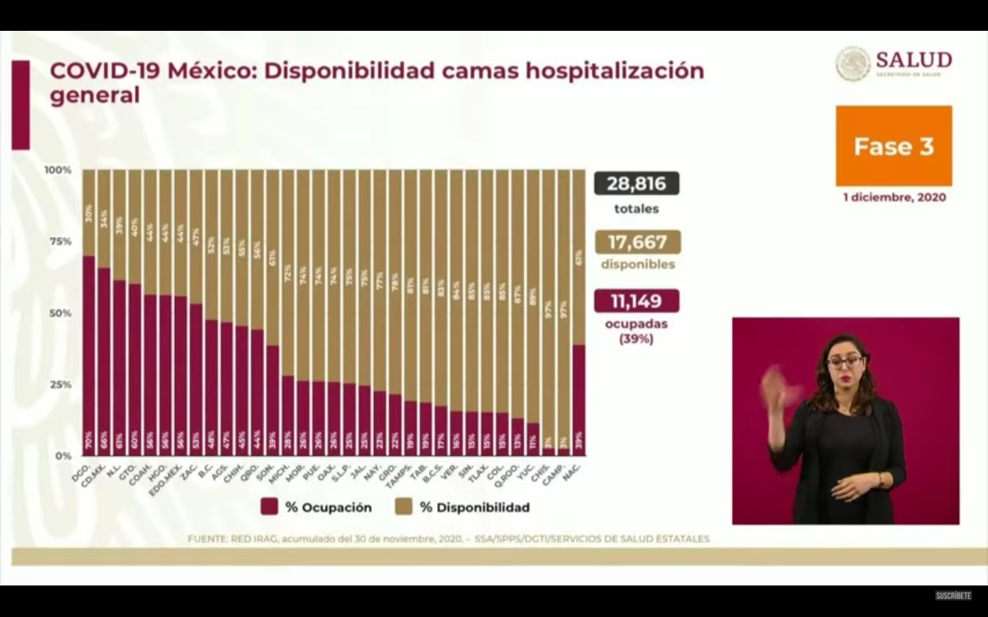 A nivel nacional, 61% de camas de hospitalización general están disponibles y 39% ocupadas. En camas con ventiladores, 68% están disponibles y 32% ocupadas. 2/2 pic.twitter.com/tWPEYMIiCi