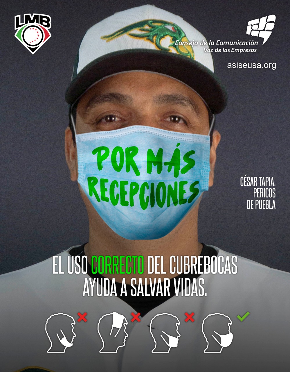 La Liga Mexicana de Beisbol y el Consejo de la Comunicación en colaboración con la Fundación Gonzalo Río Arronte, dieron a conocer su alianza para promover el uso correcto del cubrebocas con su afición, a través de la campaña “Así se usa”.