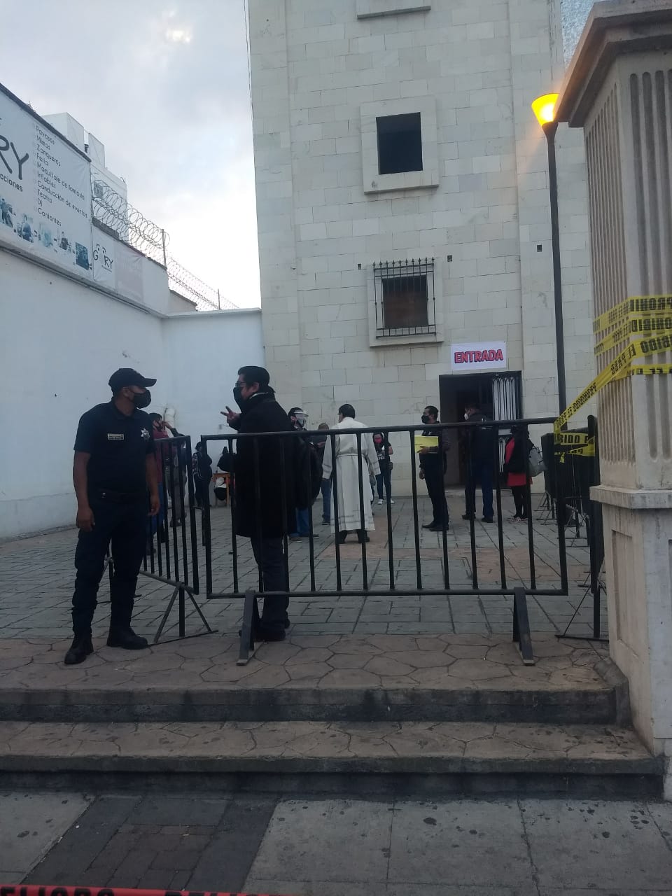 En la víspera de la celebración católica a la Virgen de Guadalupe que se celebra el 12 de diciembre, la autoridad municipal colocó cinta amarilla para evitar el estacionamiento de vehículos, así como barrotes para que no entren las personas en grupo.