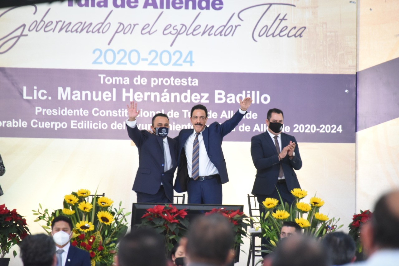 En el Auditorio Municipal “Lic. José María de los Reyes”, Manuel Hernández Badillo tomó protesta como presidente municipal de Tula de Allende, para el periodo 2020–2024. El acto fue atestiguado por el gobernador del estado de Hidalgo, Omar Fayad Meneses, y por el coordinador del Congreso del Estado, diputado Asael Hernández Cerón.