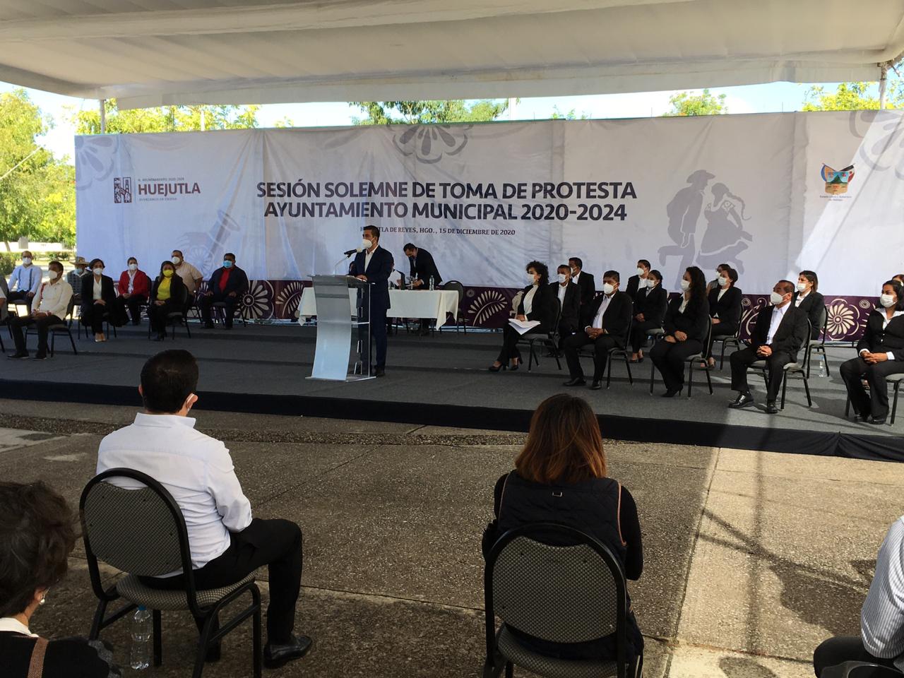 Durante la toma de protesta se contó con la presencia del gobernador, Omar Fayad Meneses, quien ofreció su respaldo, apoyo y coordinación “para que a Huejutla y la Huasteca les vaya bien”.