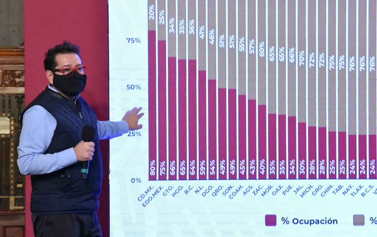 Durante la conferencia vespertina en Palacio Nacional, Ricardo Cortés Alcalá, director general de promoción a la Salud, reveló que Hidalgo es el cuarto estado con mayor ocupación hospitalaria, sumando un 65 por ciento en ocupación de camas generales para atención COVID y un 40 por ciento en ocupación de camas con ventilador.