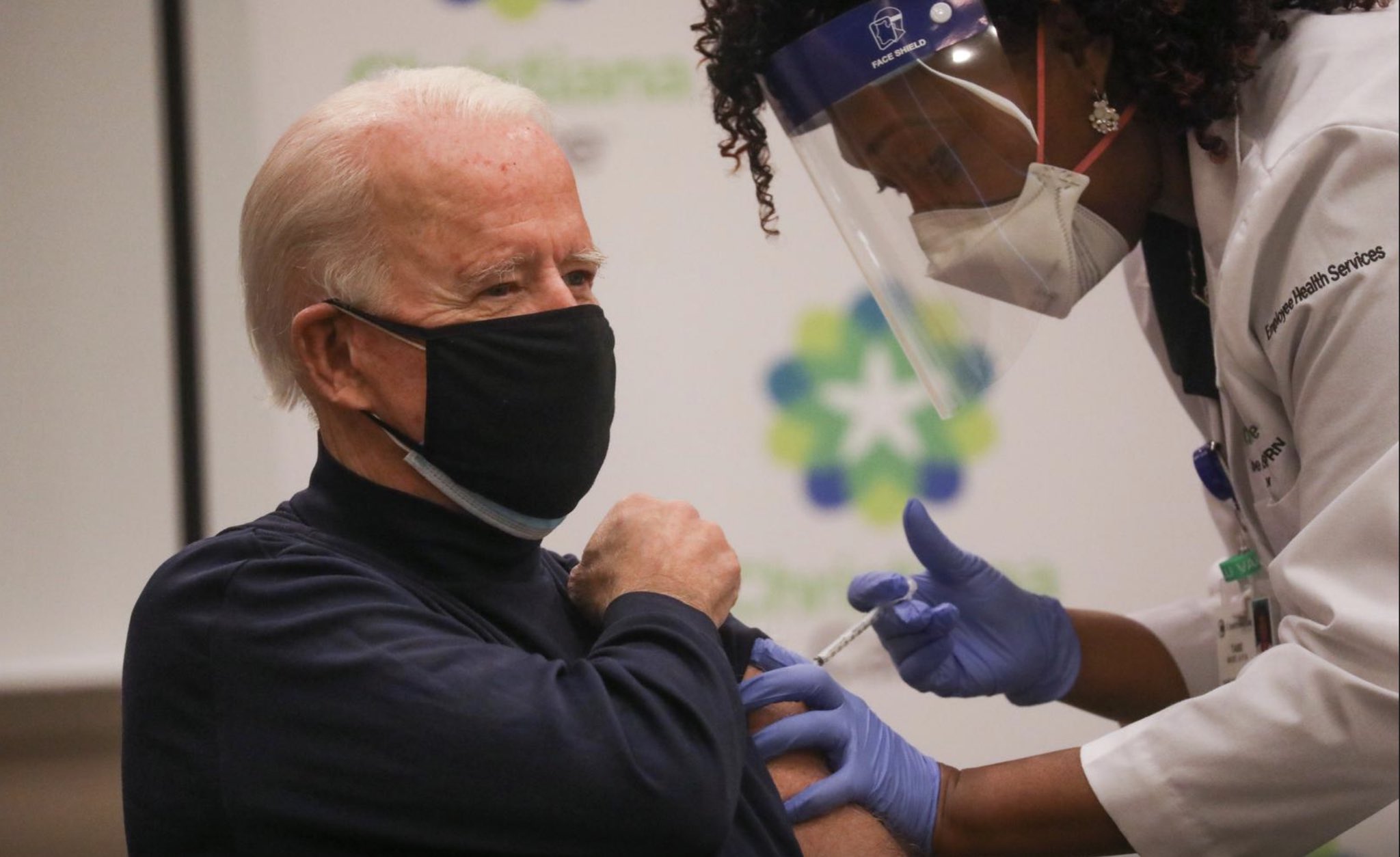 A Joe Biden le administraron la primera dosis de la vacuna contra el covid-19 de Pfizer y BioNTech en el Hospital ChristianaCare en Newark, Delaware, este lunes.