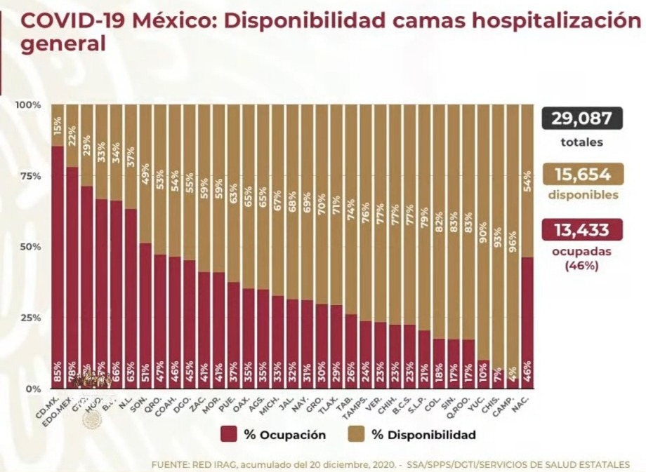 Hidalgo tiene una ocupación del 67 por ciento, mientras que en el rubro de camas con ventilador registra una ocupación del 43 por ciento.