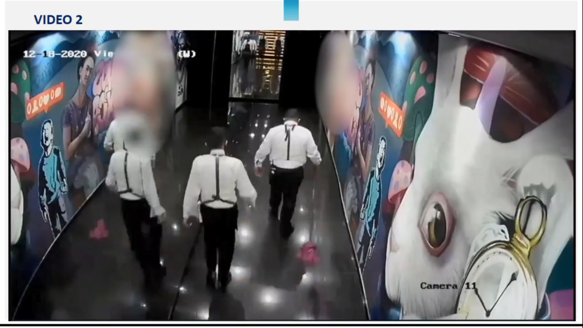 En el primero de los videos, personal del lugar limpia el piso de la zona de mesas donde presuntamente sucedió el homicidio. Mientras que en el segundo video levantan una alfombra y trapean el piso del lugar para borrar las manchas de sangre.