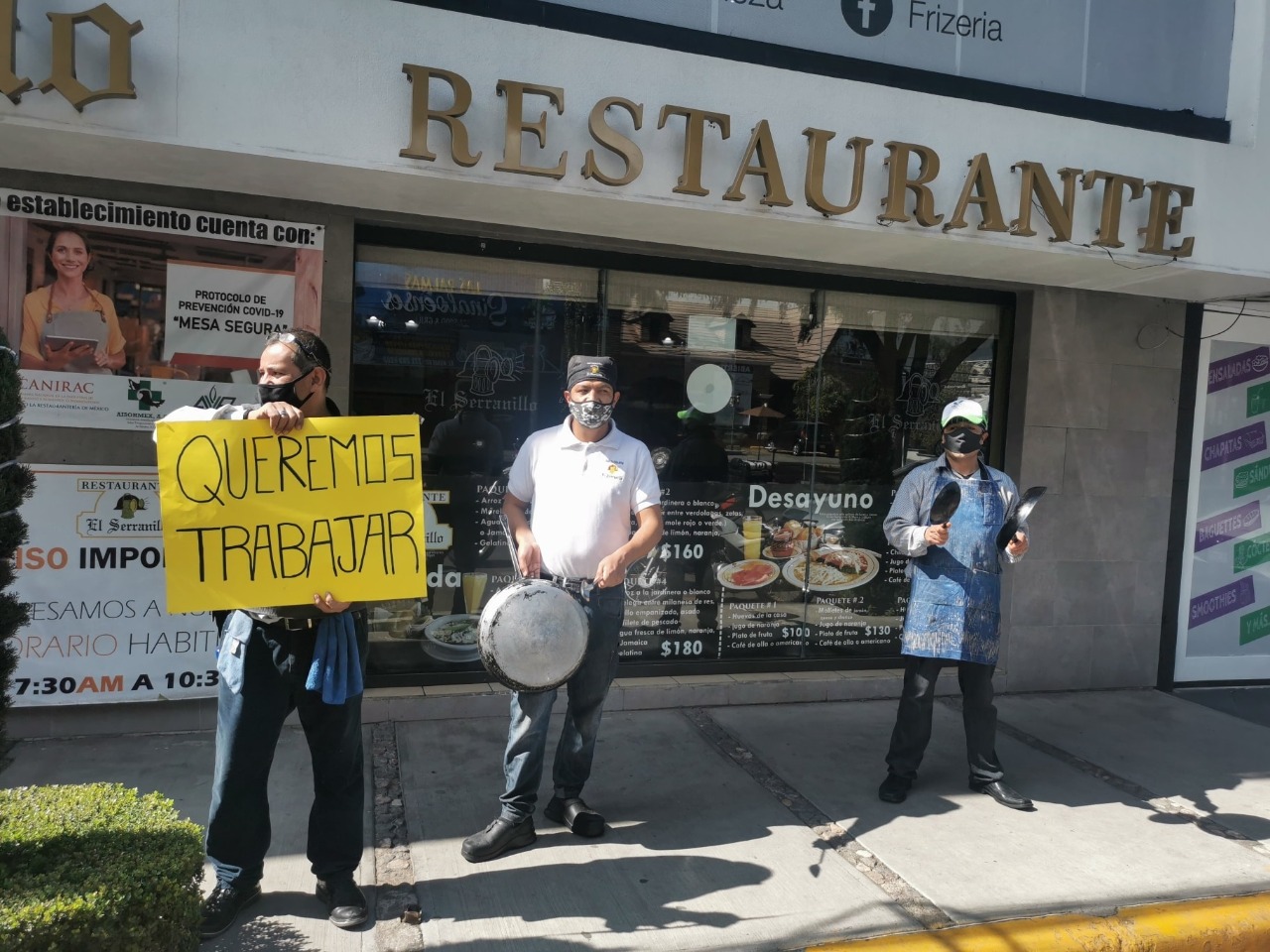 Ante la crisis causada por la pandemia del COVID-19 y los extenuantes intentos de mitigar la propagación del virus; han derivado que los empleados de distintos establecimientos de la industria restaurantera se manifestaran con cacerolas, cucharones y pancartas con leyendas como “Abrimos o morimos”, para solicitar una reapertura con un aforo mínimo del 20 o 30 por ciento y poder sustentar gastos.