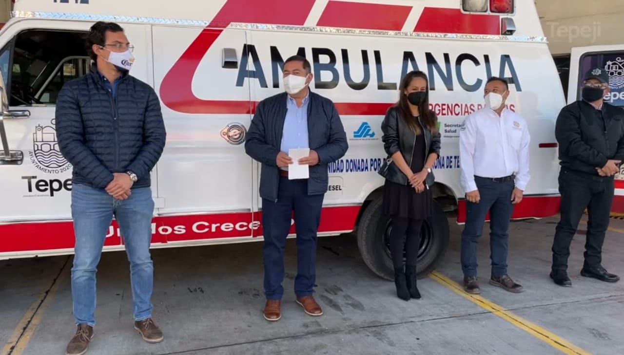 La alcaldía de Tepeji recibió en donación una ambulancia para que Protección Civil del municipio pueda realizar traslados de enfermos de COVID-19. La entrega fue realizada a nombre de una empresa distribuidora de cerveza.