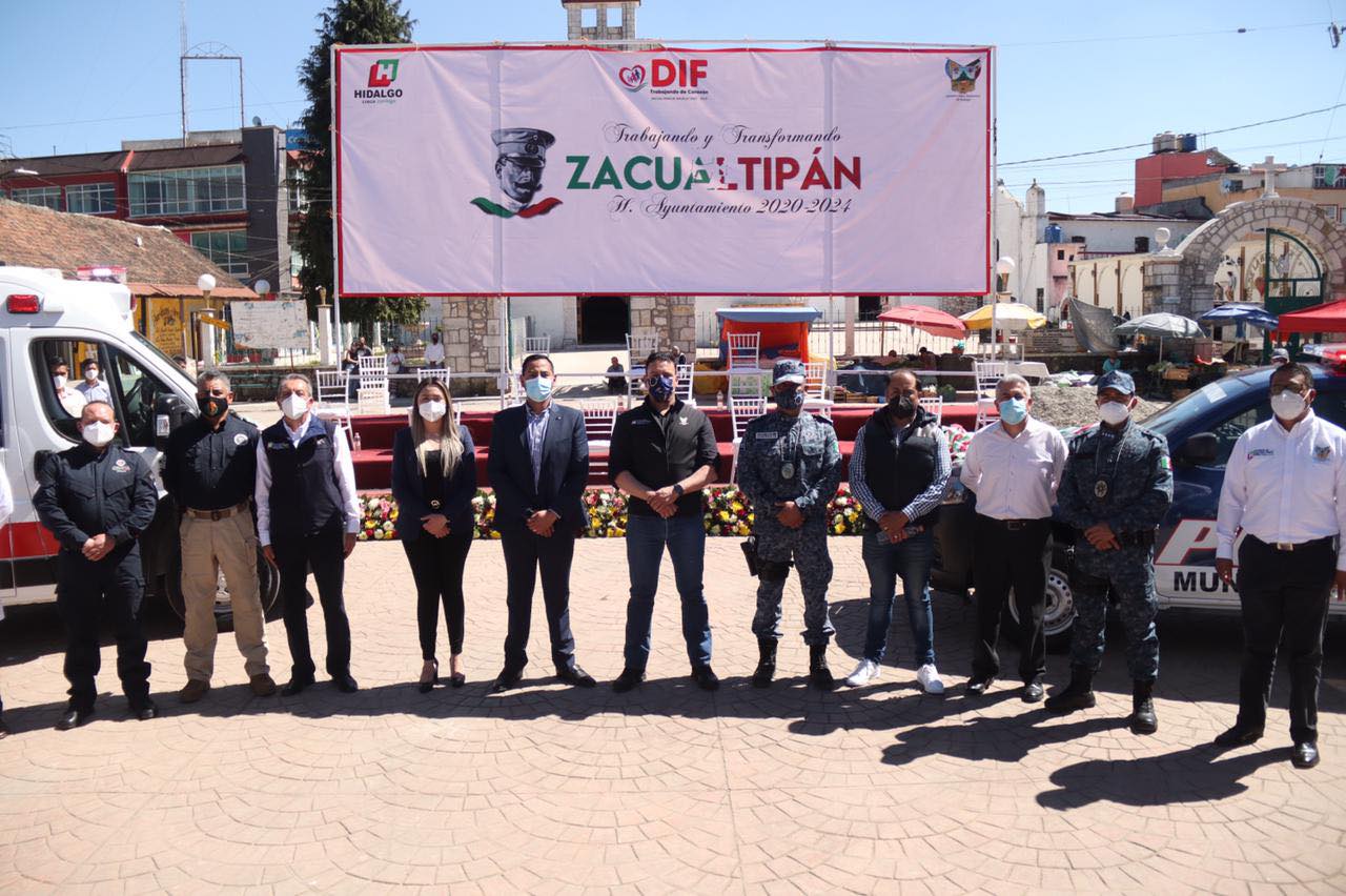 A la entrega, asistieron autoridades estatales, como Fernando López Solís, en representación de Martiniano Vega Orozco, oficial mayor del Estado de Hidalgo; Jorge Rocha Trejo, director general de Mando Coordinado en representación del secretario de Gobierno; Simón Vargas Aguilar; Uriel de Jesús Moreno Castro, comisario general de la ASEH; Antonio Serrano Moedano, director general de Gobernación; Amado Fonseca Hidalgo, comandante de la Agencia de Investigación de Zacualtipán; Enrique Padilla Hernández, director general de Protección Civil del Estado, y autoridades locales.