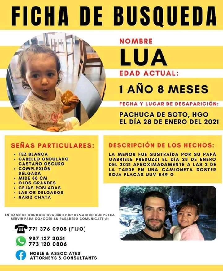 La menor Lua N.N., que estuvo once días desaparecida tras haber sido sustraída por su papá, fue recuperada en la ciudad de Zapopan, en el estado de Jalisco.