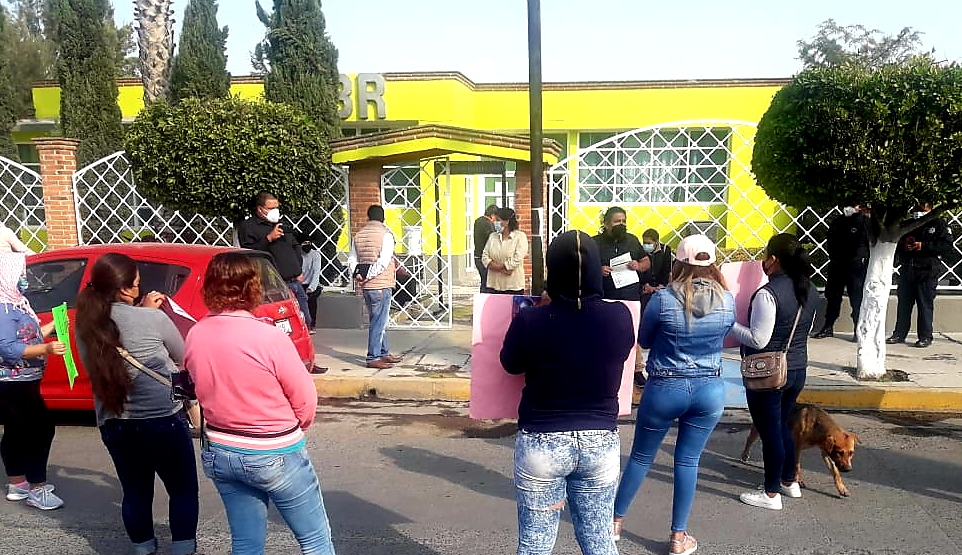 TLAHUELILPAN, Hgo.- Padres de familia del Centro de Atención Infantil Comunitario (Caic) Tlahuelilpan, se rehúsan a pagar las cuotas escolares porque sus hijos no tienen clases presenciales y se manifestaron este día exigiendo su condonación. Los padres inconformes mantuvieron un diálogo con el alcalde José Alfredo Díaz Moreno, pero no llegaron a ningún acuerdo