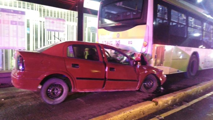 Los hechos se registraron poco después de las 19:00 horas de este viernes, cuando un automovilista que viajaba sobre el bulevar Felipe Ángeles con dirección a la Ciudad del México invadió el carril exclusivo del Tuzobús en la estación Tecnológico de Monterrey, y se incrustó debajo de una unidad del Tuzobús.