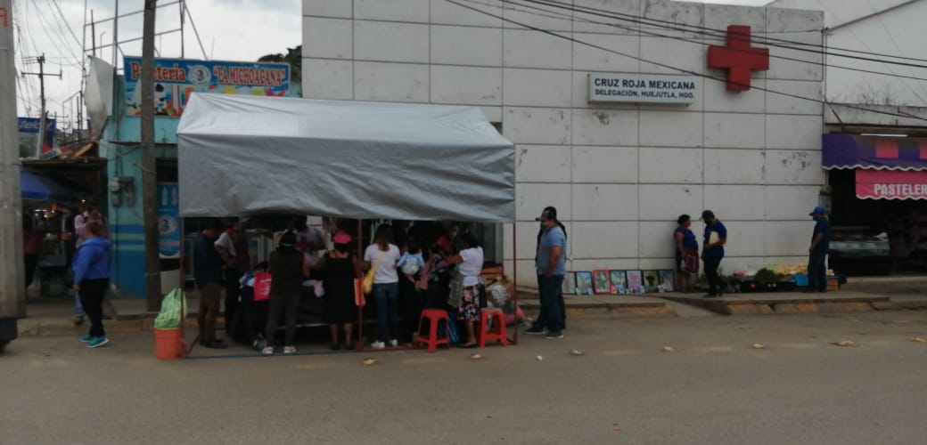 Para obtener recursos que les permitan atender sus necesidades prioritarias, la Cruz Roja Delegación Huejutla realiza un bazar de venta de ropa nueva.