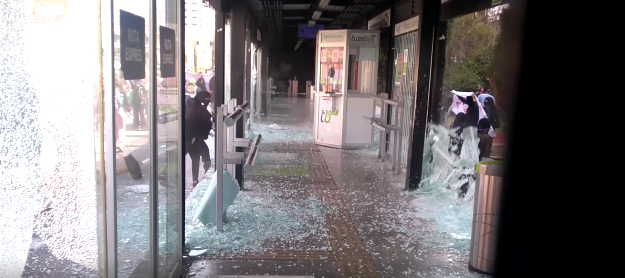 Minutos más tarde pintaron las paredes del Palacio de Gobierno y destruyeron los vidrios de la entrada principal, donde ingresaron y dañaron el mobiliario.