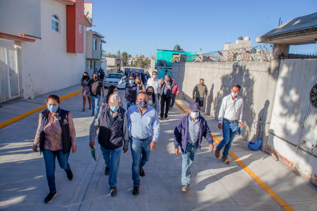 El presidente municipal de Tula, Manuel Hernández Badillo, acompañado de integrantes de la Asamblea, puso en servicio la pavimentación hidráulica, guarniciones y banquetas de la calle Volcán Pichincha, en la colonia San José, una obra que había sido gestionada décadas atrás, según expresaron los vecinos.