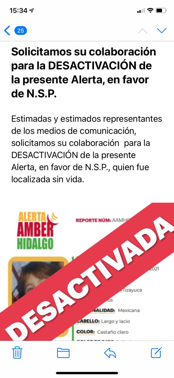 Lamentablemente, ante la recabación de los datos, ante el hallazgo de un cuerpo sin vida, de una persona menor de edad, el pasado 9 de marzo en la localidad de Tepojaco, Tizayuca; se confirmó, tras pruebas genéticas, la identidad de la menor Nicole.