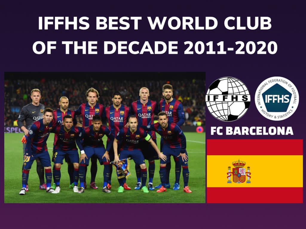Es la segunda ocasión consecutiva que los catalanes obtienen esta distinción, también fueron nombrados el mejor club de la década del 2001 al 2010.