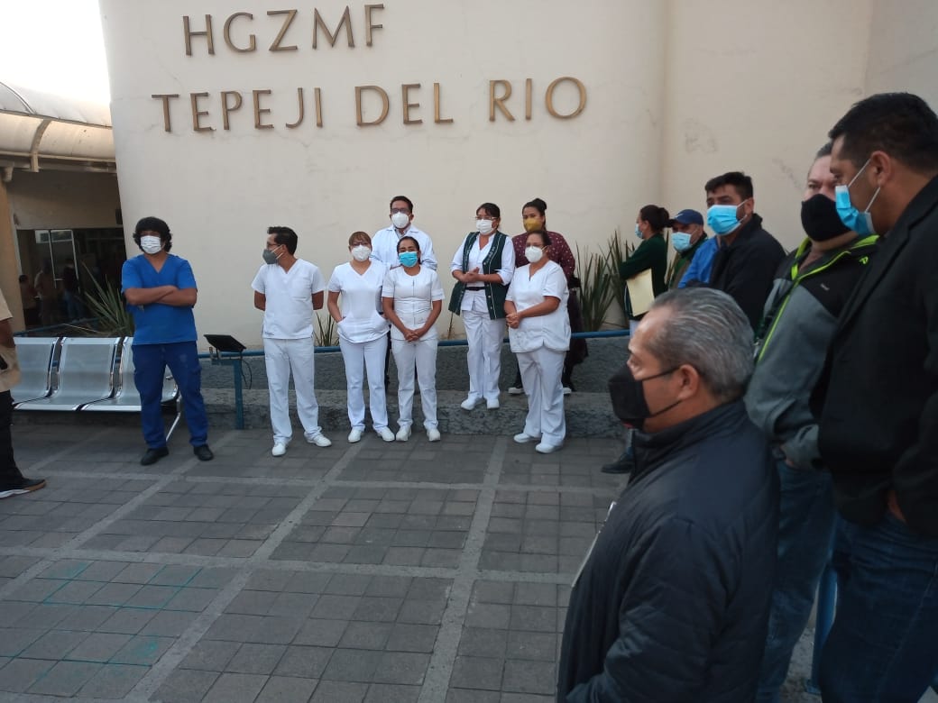 Personal del Hospital General de Zona del IMSS Tepeji del Río realizó una protesta para pedir que todo el personal sea vacunado, ya que, de una plantilla de 500, 180 no han sido inmunizados.