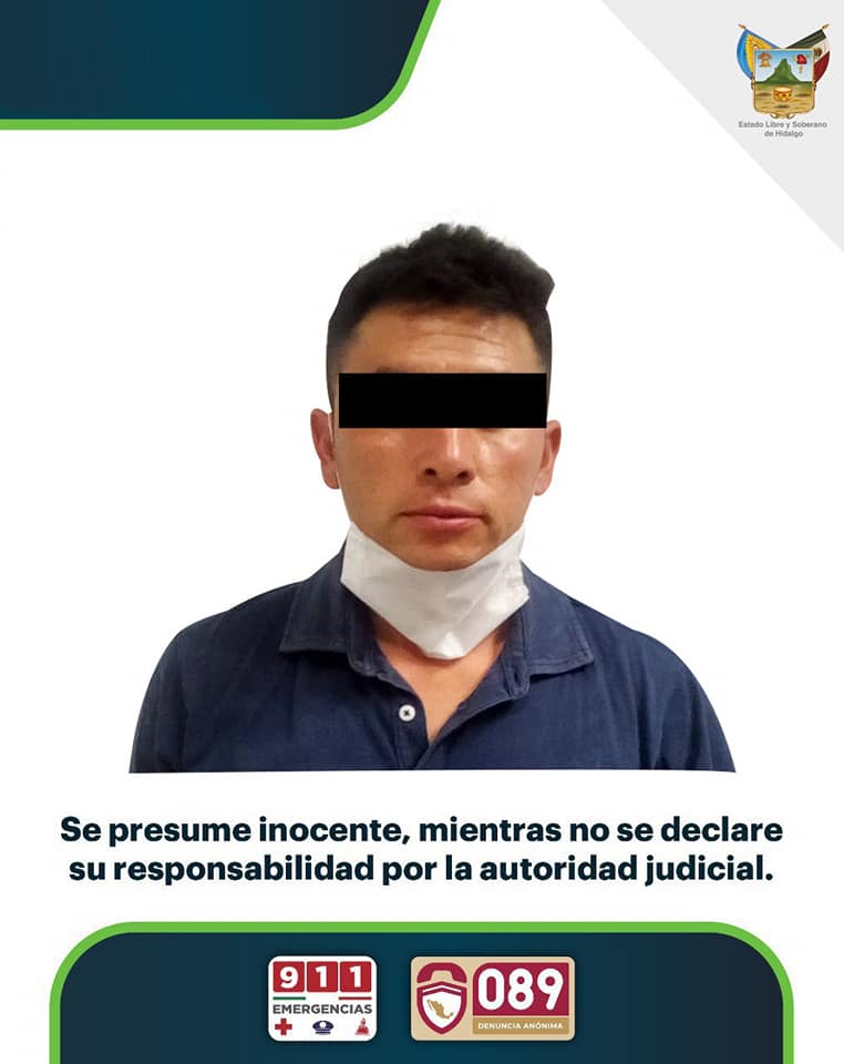 El presunto se identificó como J.A.E.S. de 31 años, quien quedó a disposición de la Fiscalía General de la República, mediante su representación en Hidalgo, para los trámites legales en consecuencia.