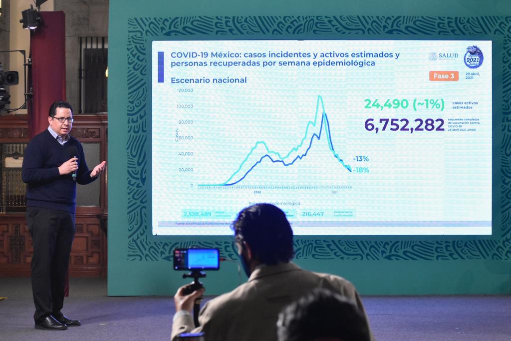 Hugo López-Gatell, subsecretario de Salud, informó durante la conferencia de prensa vespertina que son ya 17 millones 357 mil 993 las dosis aplicadas de la vacuna anticovid, de las cuales 10 millones 653 mil 462 a adultos mayores de 60 años, mientras que 602 mil 560 fueron a personal educativo.