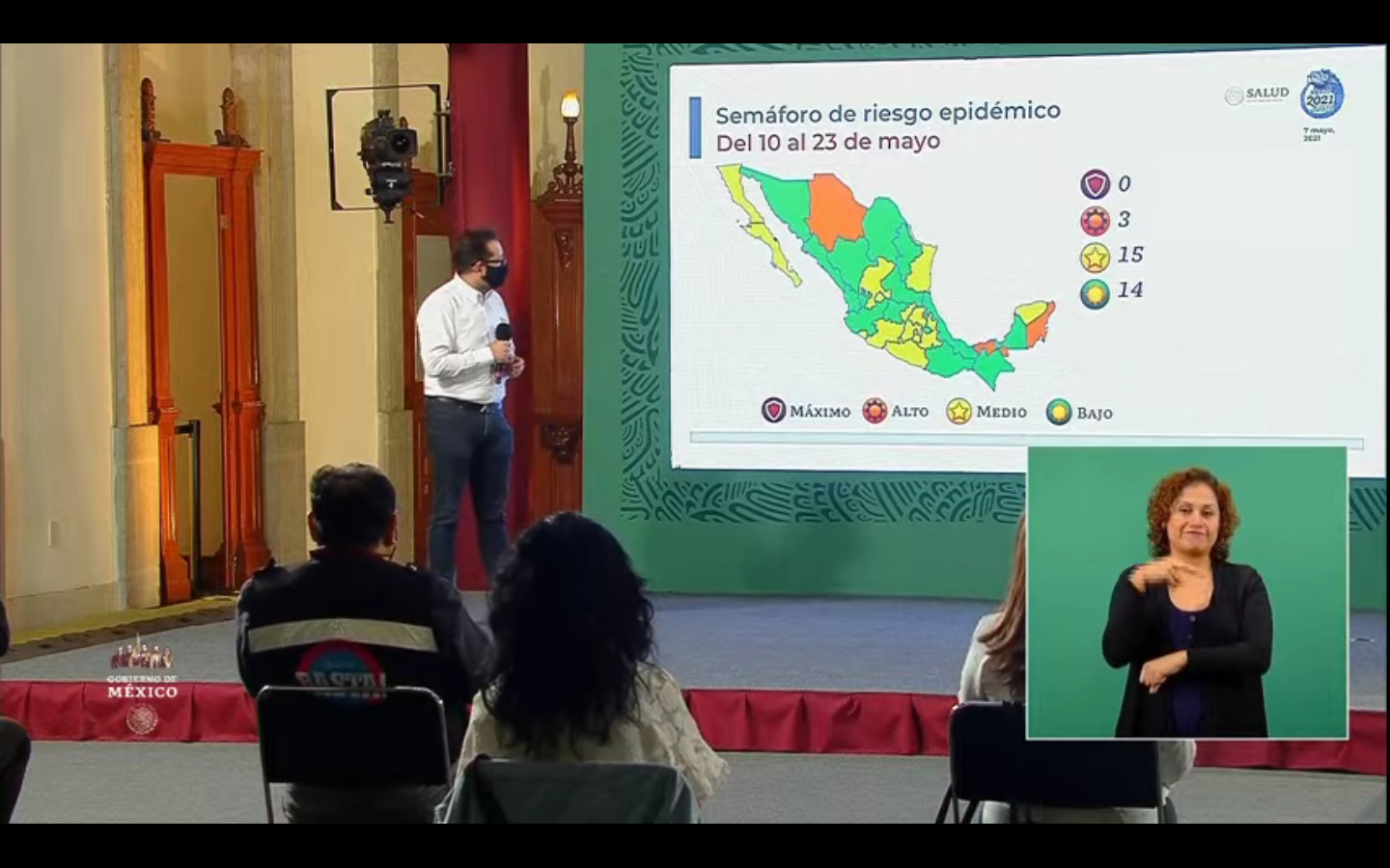 Ricardo Cortés Alcalá informó durante la conferencia de prensa vespertina, que ante la actualización del semáforo epidemiológico, Hidalgo y 14 entidades más, cambian a color amarillo durante los próximos 15 días, que corresponden del 10 al 23 de mayo.