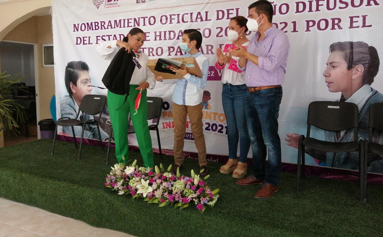 En emotiva ceremonia que tuvo lugar en las instalaciones del Sistema DIF Huejutla, Brenda Vázquez González, representante estatal de la participación infantil en el Sistema DIF Hidalgo, hizo entrega del reconocimiento que lo acredita como tal, además de un equipo de cómputo a este destacado estudiante originario de la Huasteca Hidalguense.