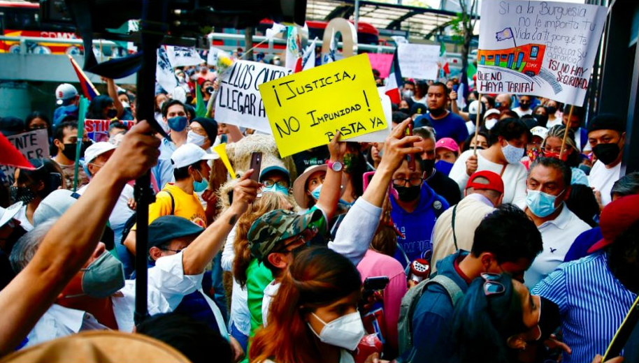 Con pancartas con las frases “Justicia, no impunidad” y “Que tener un transporte digno no sea un privilegio”, los manifestantes acusaron también la responsabilidad de Marcelo Ebrard, exjefe de Gobierno capitalino.