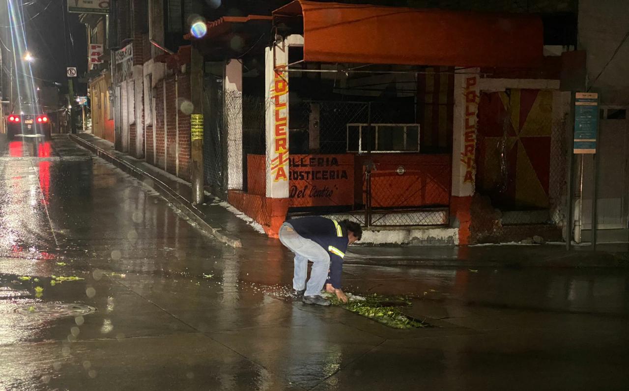 La alcaldía informó que en recorrido de la zona centro para verificar reportes, el organismo operador del agua detectó que en la calle José María Mata las tapas de los pozos de visita se movieron de su lugar, arrastradas por la fuerte corriente de agua, lo que provocó que los drenajes pluviales se llenaran de hojas de árboles y algunos otros residuos, por lo que las colocaron nuevamente para evitar riesgos para los automovilistas y ciudadanos.