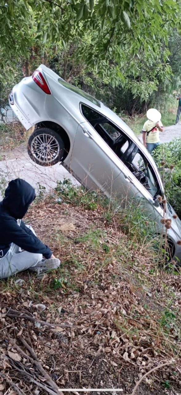 Esta tarde un automóvil terminó dentro de un canal en el Municipio de Tepeji del Río.