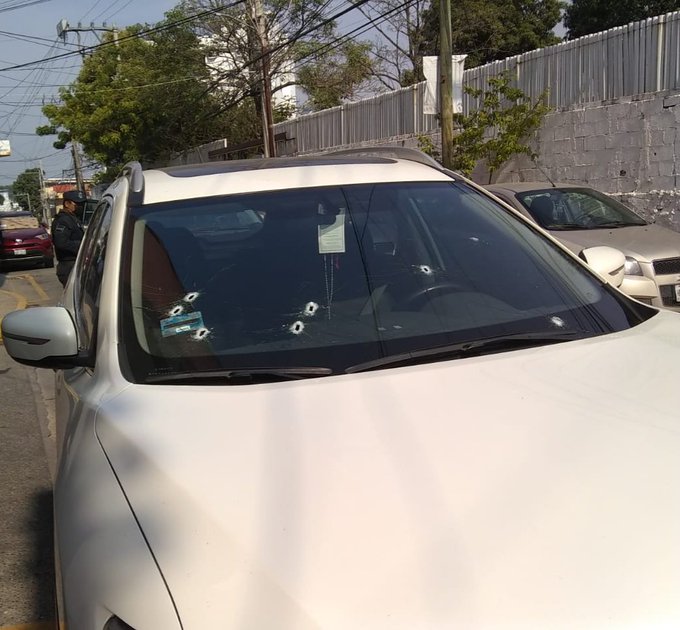 Se reporta que al menos ocho impactos recibió la camioneta en el parabrisas donde viajaba, los cuales, cinco se ubicaron del lado del copiloto.