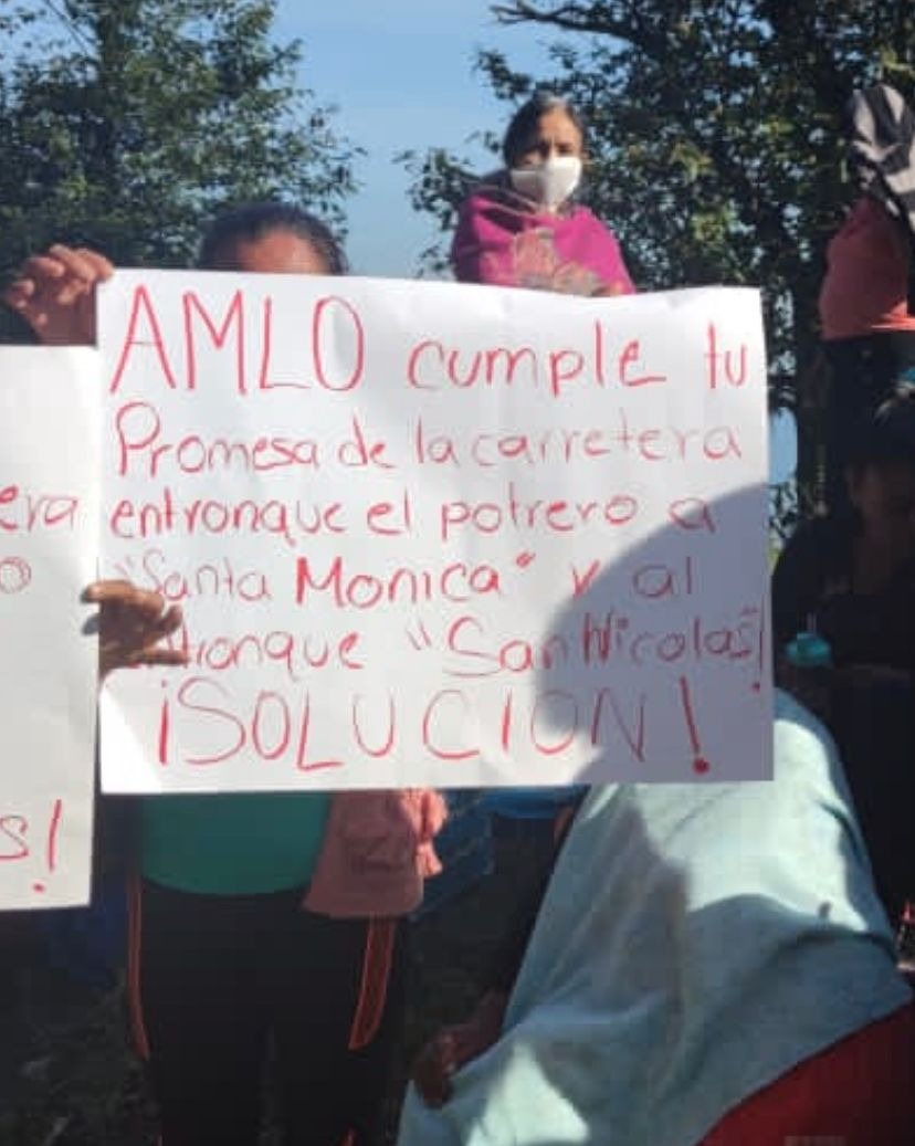 Los manifestantes dieron a conocer que la obra comprometida por el Presidente atendería la pavimentación carretera que demandan desde hace 10 años, la cual ha sido ignorada por las administraciones federales y estatales, por lo que exigen la presencia de autoridades de estos órdenes de gobierno para dar solución a sus demandas.
