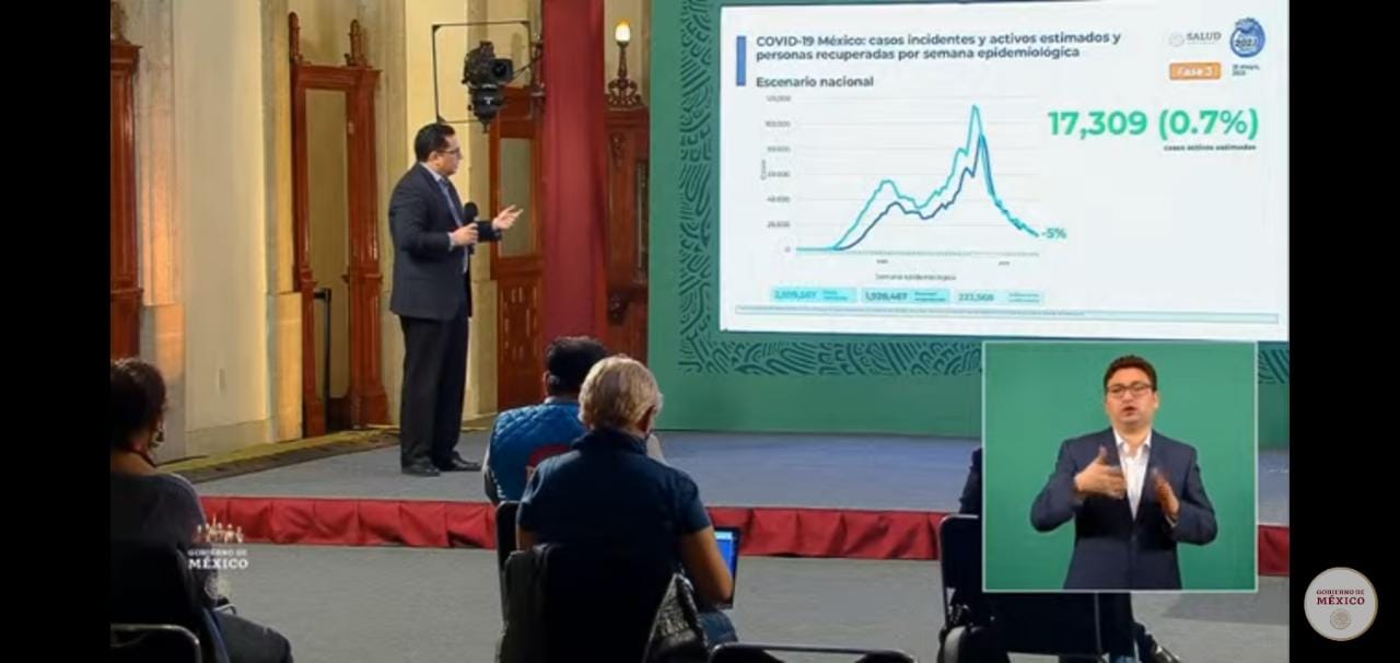 Jesús Alomía, director general de epidemiología, informó durante la conferencia de prensa vespertina que a nivel nacional continúa a la baja la curva epidemiológica, esperando terminar la estadísticas con una meseta.