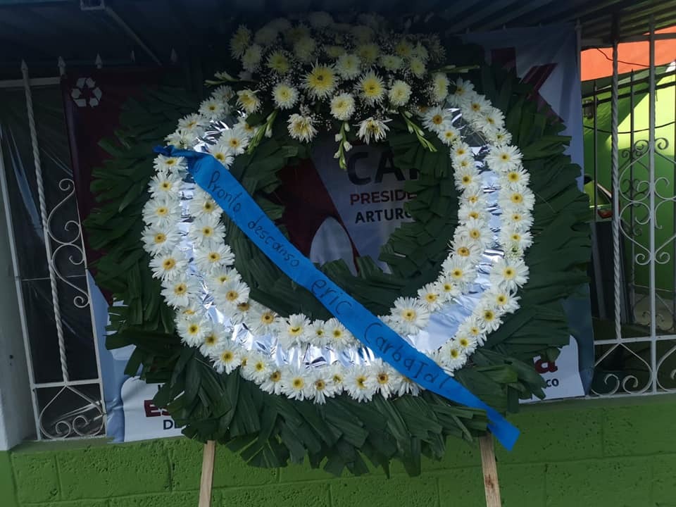 De acuerdo con las imágenes que difundió el candidato, la corona tenía la leyenda “Pronto descanso Eric Carbajal”.