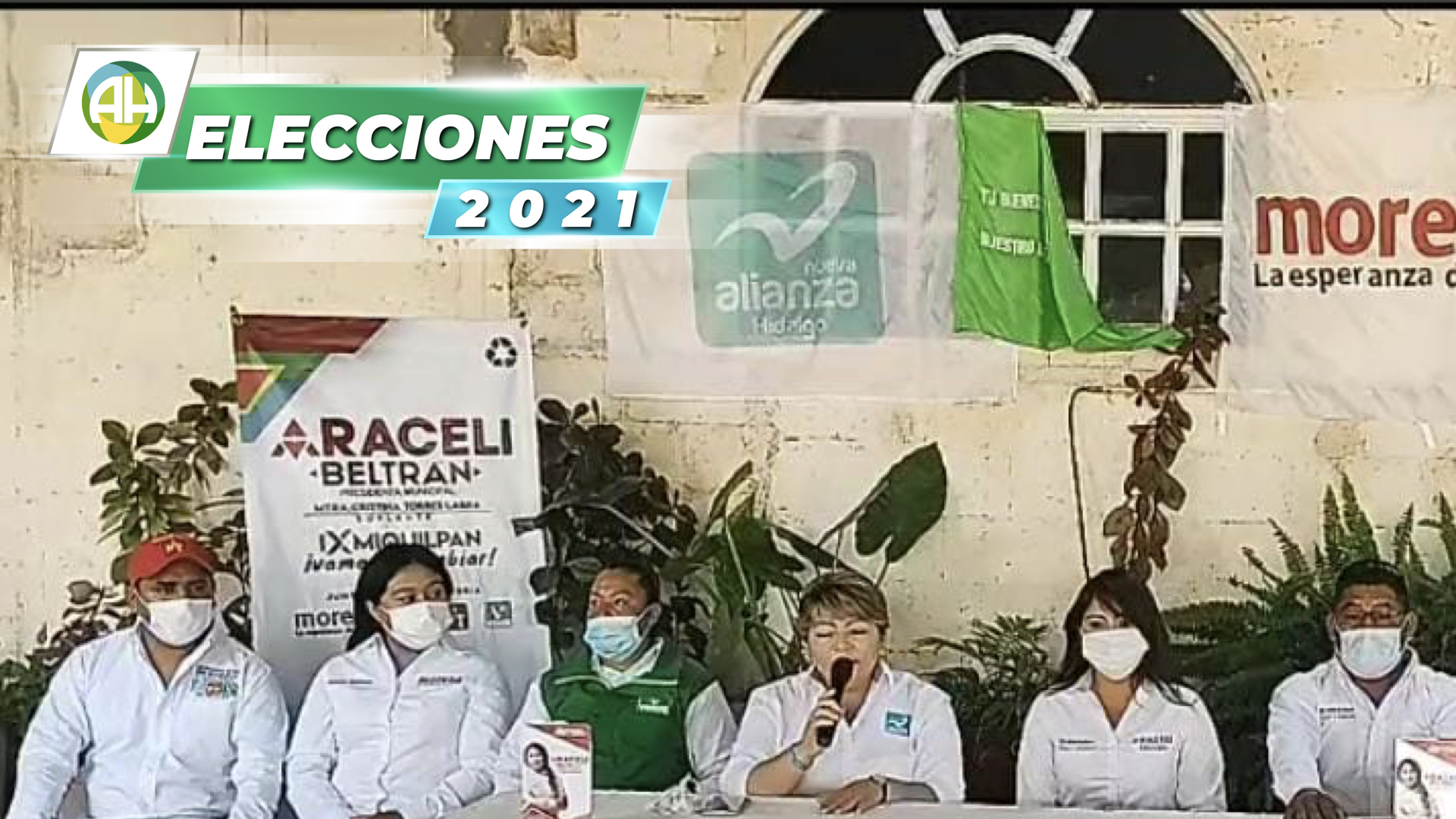 A la rueda de prensa asistieron la representante del Partido Nueva Alianza, Lizeth Mireya Hernández; Maribel Gómez, del Verde Ecologista, y el presidente de Morena, Álvaro López Hernández; quienes mostraron su total apoyo a la candidata, así como a la coalición Juntos Haremos Historia en Hidalgo.