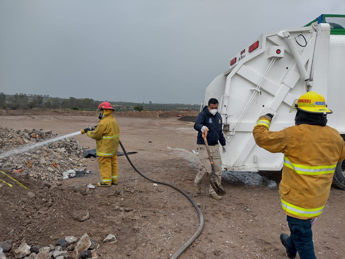Elementos de Protección Civil acudieron a atender el reporte verificando que no existiera riesgo para la población y los trabajadores y como medida de prevención se trasladó la unidad compactadora a un lugar despoblado en el que se revisaron los residuos minuciosamente.