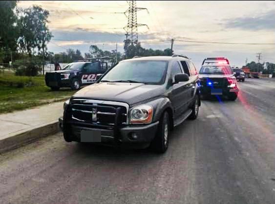 Fue a través del sistema de videovigilancia de la estrategia Hidalgo Seguro y agentes en campo, que se dio seguimiento a un incidente reportado en la colonia Piedras del Llano y con ello se implementó un dispositivo en la carretera Jorobas-Tula, donde fue intervenida una camioneta Dodge Durango, color gris, con placas del Estado de México.