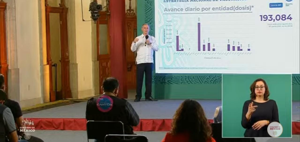 Asimismo, expuso que son ya 34 millones 658 mil 545 las dosis aplicadas de la vacuna contra COVID-19, de las cuales 14 millones 193 mil 288 corresponden a esquemas completos y 10 millones 30 mil 985 a medios esquemas.