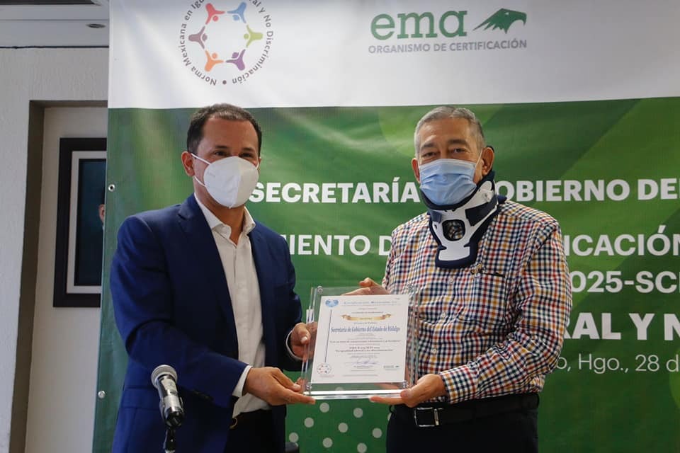 El día de ayer, la Secretaría de Gobierno del Estado de Hidalgo, recibió el certificado de conformidad por el cumplimiento a la Norma Mexicana NMX-R-025-SCFI-2015 en Igualdad Laboral y No Discriminación.