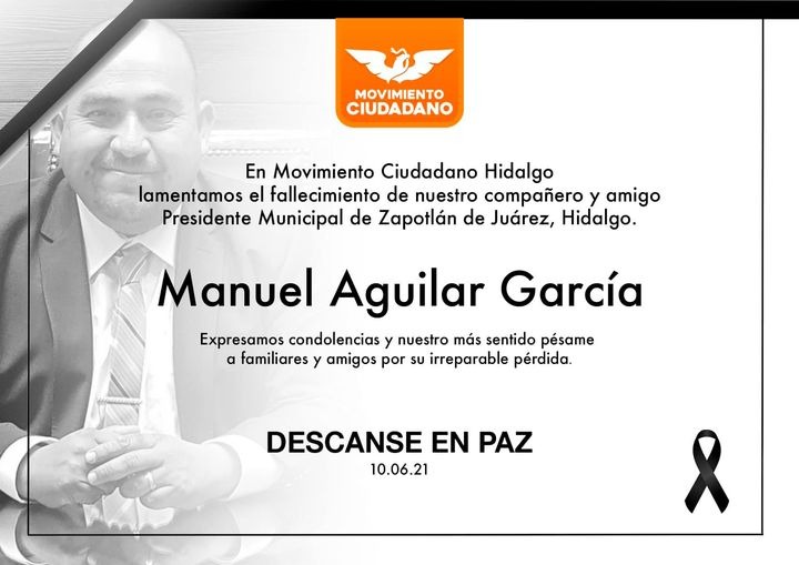 Además, desde su cuenta de Facebook la dirigencia del partido en Hidalgo lamentó el fallecimiento de su militante Manuel Aguilar y expresó sus condolencias a los familiares y amigos.