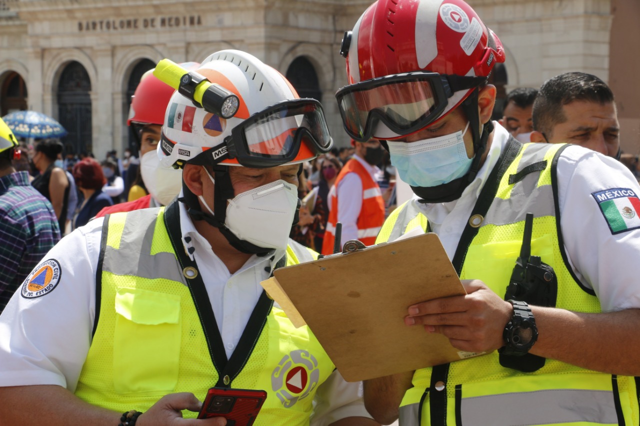 El gobierno de Hidalgo se sumó al primer macro simulacro 2021 convocado por la Secretaría de Seguridad y Protección Ciudadana del Gobierno de México, en el que participaron 595 personas que desalojaron las instalaciones del Palacio de Gobierno.