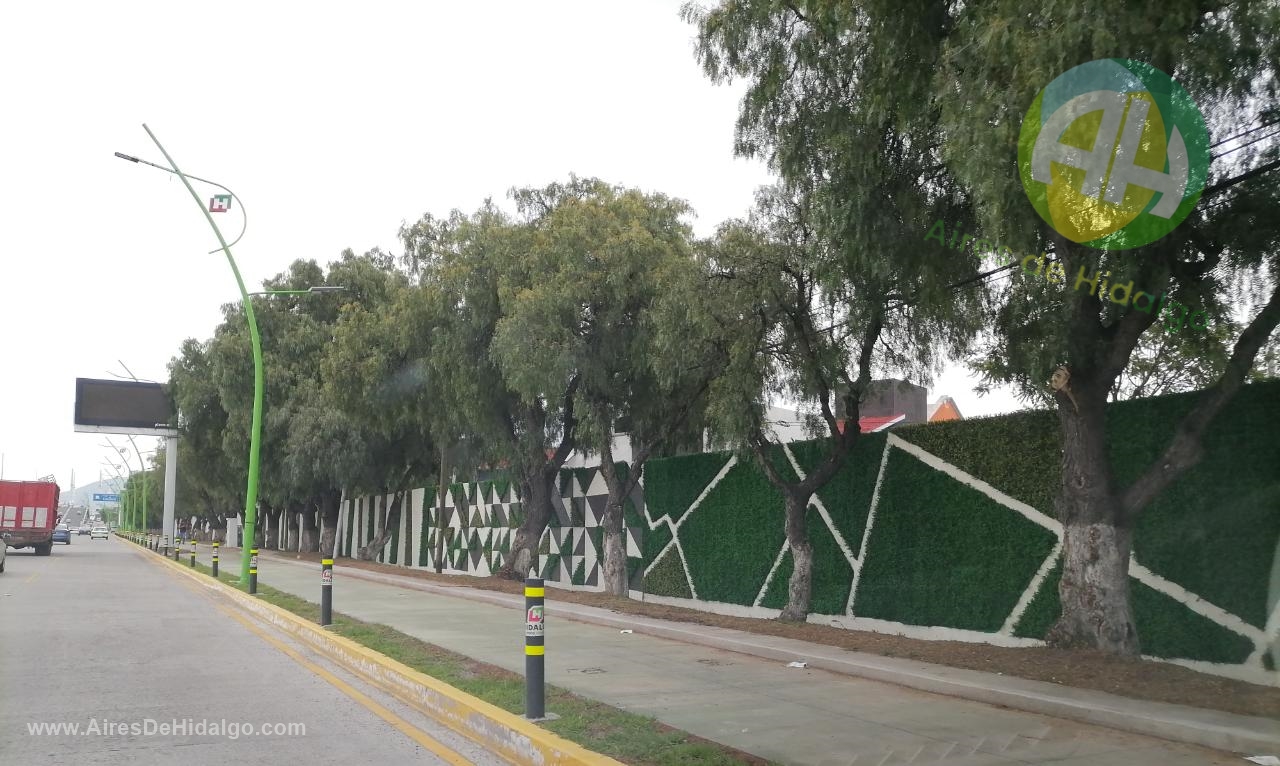 Casi cuatro meses después, se puede observar la pronta conclusión de la obra, por lo que solo se afina la colocación de pasto sintético en los muros y arbustos naturales en las guarniciones.