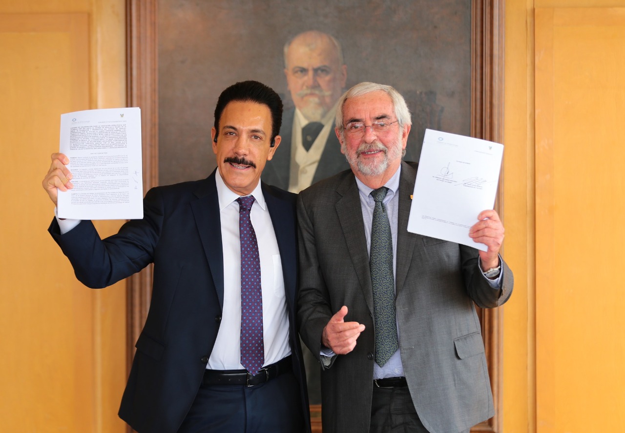 Esta tarde, el gobernador del estado de Hidalgo, Omar Fayad y el Dr. Enrique Graue Wiechers, rector de la Universidad Nacional Autónoma de México (UNAM), firmaron un convenio para que la primera Aceleradora de Negocios Biotecnológicos en el país se establezca en Hidalgo.