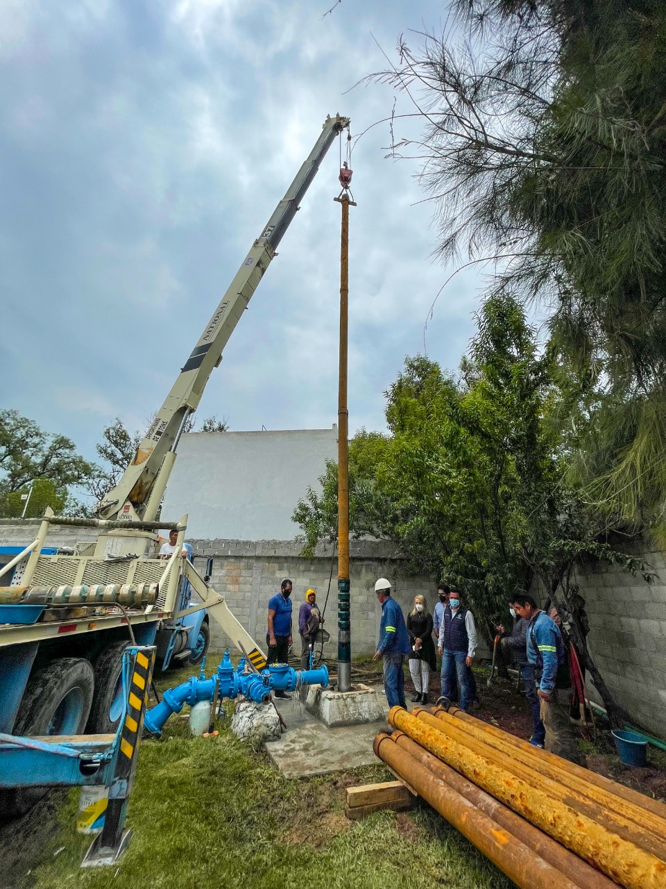 El presidente municipal de Tula de Allende, Manuel Hernández Badillo atestiguó el cambio de motobomba sumergible en el pozo Las Manzanitas 3 que tiene como fin el garantizar un eficiente suministro del vital líquido a cientos de familias. Acción con la que se cumple uno de los compromisos de la administración municipal de ofrecer mejores servicios públicos a los tulenses.