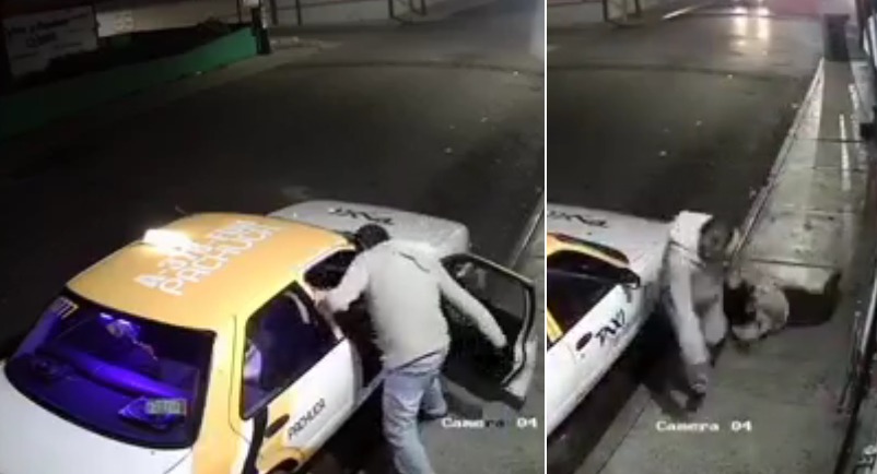A través de redes sociales se ha difundido un vídeo de una cámara de seguridad que captó el momento en que un taxista desciende de su unidad para comprar una cerveza y tomársela, acto seguido golpea a una mujer que estaba llorando atemorizada en el asiento del copiloto.