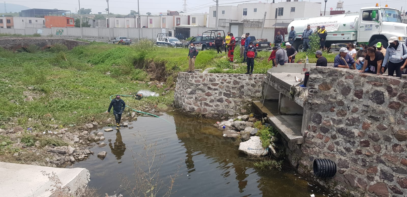 Desde el domingo los familiares y vecinos no han cesado de revisar una y otra vez los canales hasta la Planta Tratadora de Aguas Residuales y hoy volvieron a pedir auxilio de Protección Civil y llegaron las corporaciones de Atotonilco de Tula y Tula, estos últimos quienes llevaron perros entrenados, uno de ellos Cachi Jr., que está entrenado para rastrear personas vivas o fallecidas, pero no localizaron el cuerpo del menor desaparecido.