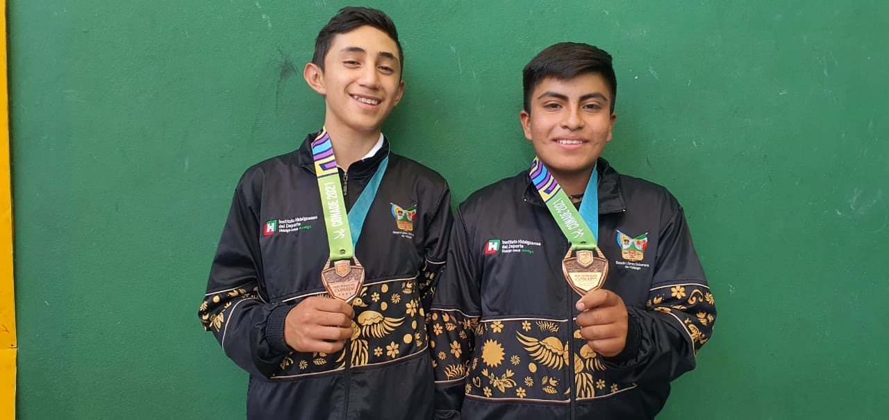 Los hidalguenses Luis Antonio Mellado Corona y Edwin Ulises Olvera Zagayo conquistaron la medalla de bronce en la modalidad de trinquete mano parejas de la categoría juvenil A de la disciplina de frontón en los Juegos Nacionales CONADE 2021.