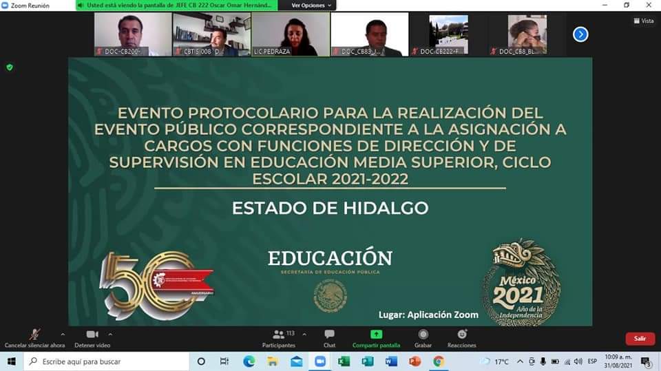Los nombramientos se hicieron en ceremonia virtual que contó con la presencia del titular de la SEP Hidalgo, Atilano Rodríguez Pérez; Jesús López Serrano, titular de la Oficina de Enlace Educativo del Gobierno de México en Hidalgo; Emilio Cruz Sánchez y de Juan Benito Ramírez Romero, subsecretario de Educación Media Superior y Superior de la SEP Hidalgo.